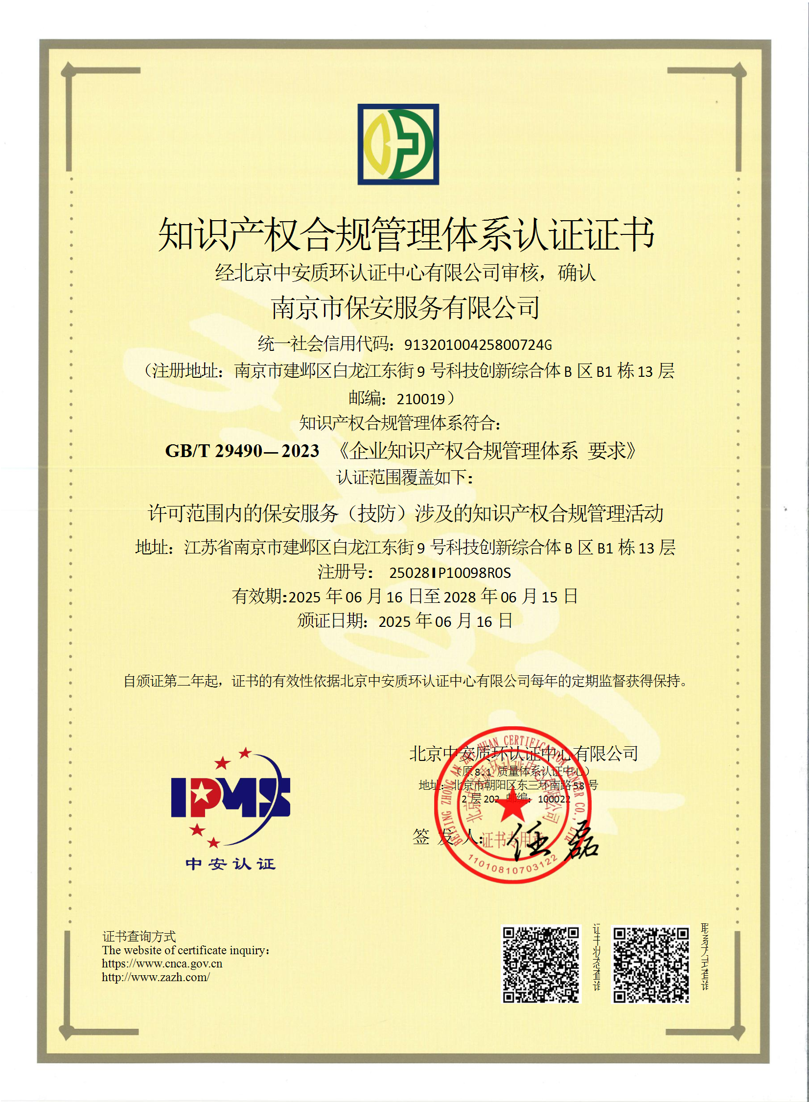 知識產(chǎn)權(quán)合規(guī)管理體系認(rèn)證證書